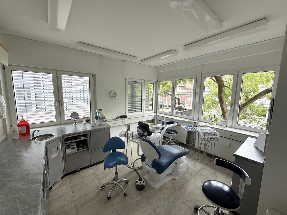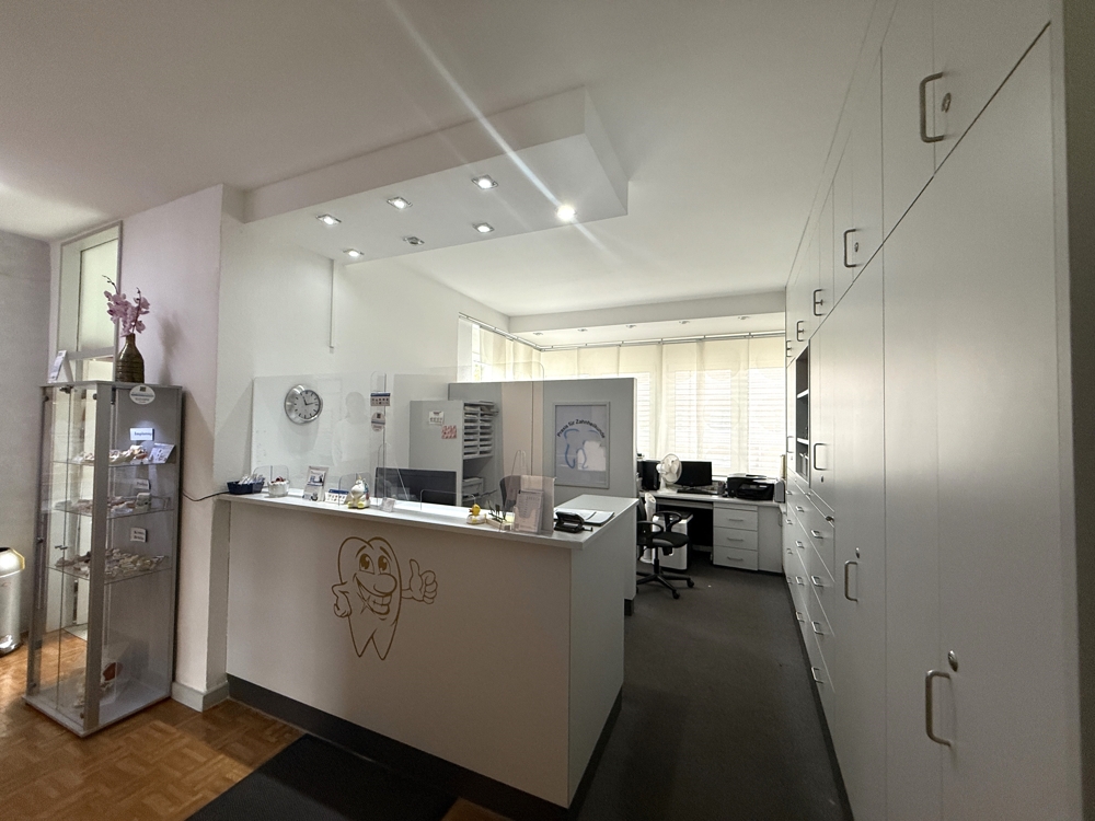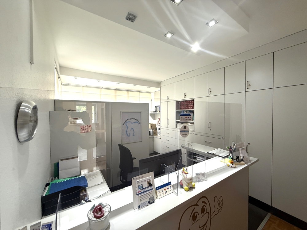 Zum 01.09.2026 wird in der Innenstadt von Gladbeck eine großzügige Praxisfläche frei. Sie befindet sich im zweiten Obergeschoss der Volksbank-Filiale und bietet damit eine repräsentative Adresse in einem modernen Geschäftshaus mit sehr guter Erreichbarkeit. Die derzeit als Zahnarztpraxis genutzten Räume verfügen über drei Behandlungszimmer, einen Röntgenraum, einen Personalraum sowie ein Wartezimmer und eine WC-Anlage. Durch die funktionale und praxisgerechte Aufteilung eignen sich die Flächen sowohl für die weitere Nutzung als Zahnarztpraxis als auch für andere medizinische Fachrichtungen oder gesundheitsnahe Dienstleistungen. Die zentrale Innenstadtlage sorgt für eine hohe Sichtbarkeit, eine gute Anbindung an den öffentlichen Nahverkehr und kurze Wege zu Parkmöglichkeiten. Damit bietet die Praxisfläche ideale Voraussetzungen für einen erfolgreichen Praxisbetrieb in einem attraktiven Umfeld. Die ersichtliche Empfangstheke ebenso wie der deckenhohe Aktenschrank im Eingangsbereich können vom Vormieter übernommen werden. Nutzen Sie diese einmalige Chance und vereinbaren Sie noch heute einen Besichtigungstermin!