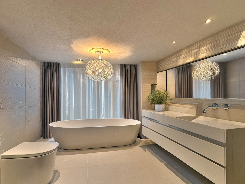 In ruhiger Sackgassenlage befindet sich diese Doppelhaushälfte in Duisburg- Rheinhausen. Das ursprünglich als Zweifamilienhaus konzipierte Objekt wurde seit Anbeginn als Einfamilienhaus genutzt. Durch die geräumige Diele im EG erreichen Sie einerseits den separaten Essbereich als auch die Küche. Zudem finden Sie auf dieser Ebene einen Garderobenbereich, ein Gäste-WC und den großen Wohnbereich mit Kamin, der durch einen Durchbruch fast 37 m² Wohnfläche hat. Über das EG erreichen Sie zudem auch den pflegeleicht gestalteten Garten mit überdachtem Terrassenbereich. Das Gäste-WC kann auf dieser Ebene auf Wunsch auch wieder mit dem jetzigen Garderobenbereich zusammengelegt und in das ehemalige Vollbadezimmer zurück gewandelt werden. Über das Treppenhaus gelangen Sie in das 1. OG der Immobilie. Hier finden Sie zwei kleinere Zimmer, welche sich ideal als Arbeits- oder Kinderzimmer nutzen lassen. Eines der beiden Räume hat zudem Zugang zu einer kleinen Nutzfläche im Dachgeschoss. Die beiden großen Räume wurden durch einen Durchbruch verbunden und bilden nun ein großen Ankleidebereich mit Schlafzimmer. Das ursprüngliche Hauptbad wurde in ein WC umgewandelt. Natürlich besteht auch hier die Möglichkeit und der Platz, auf dieser Ebene wieder ein vollständiges Bad zu schaffen. Dies haben wir in den beigefügten Animationen für Sie in 2 Varianten als Beispiel visualisiert. Ersatzweise haben die Eigentümer eine riesige und ebenerdige Dusche im Kellerbereich des Hauses geschaffen. Eine Doppelgarage mit integriertem Abstellraum und 2 Stellplätzen davor ist ebenfalls vorhanden und rundet dieses Angebot ab!