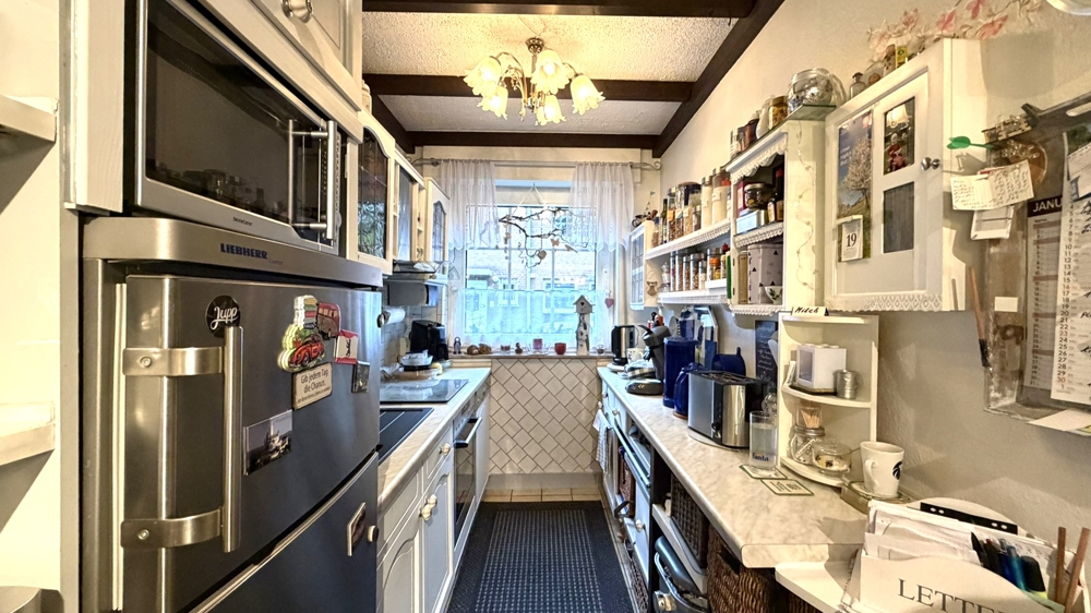 Diese gepflegte Doppelhaushälfte aus dem Jahr 1981 verbindet großzügiges Wohnen mit flexiblen Nutzungsmöglichkeiten und präsentiert sich als ideales Zuhause für Familien oder Mehrgenerationenlösungen. Auf rund 102 m² Wohnfläche sowie zusätzlich ca. 25 m² wohnlich ausgebautem Souterrain bietet die Immobilie vielfältige Optionen für Wohnen, Arbeiten oder Gäste. Im Erdgeschoss erwartet Sie ein offener Wohn- und Küchenbereich, der durch seine helle, einladende Atmosphäre überzeugt. Von hier aus gelangen Sie direkt auf die Terrasse – ein idealer Ort für entspannte Stunden im Freien. Der dahinterliegende, kleine Garten ist von hier und vom Souterrain aus zugänglich und bietet Raum für gemütliche Grünflächen, Pflanzen oder einen kleinen Spielbereich. Ein Gäste-WC ergänzt das Erdgeschoss. Das 1. Obergeschoss bietet mit seiner offenen Küche und dem angrenzenden Wohnbereich weitere Gestaltungsspielräume, etwa für ein zweites Wohnzimmer, Arbeiten oder ein eigenes Wohnkonzept für Familienmitglieder. Ein modernes Duschbad rundet diese Ebene ab. Im Dachgeschoss stehen zwei gut geschnittene Zimmer sowie ein weiteres Duschbad zur Verfügung – perfekt als Schlafräume, Homeoffice oder Hobbybereich. Das wohnlich ausgebaute Souterrain mit zwei Räumen, eigenem Badezimmer und direktem Gartenzugang stellt ein besonderes Highlight dar und eignet sich hervorragend für Gäste, Jugendliche oder eine separate Arbeits- bzw. Rückzugszone. Rollläden in vielen Bereichen, eine effiziente Gas-Zentralheizung aus 2023 sowie die vorteilhafte Südwest-Ausrichtung bieten zusätzlichen Komfort. Eine Garage, ein Carport sowie eine zweite Terrasse über der Garage erweitern das attraktive Gesamtpaket. Der Energieausweis befindet sich in Bearbeitung. Dieses attraktive Objekt wartet auf Sie!