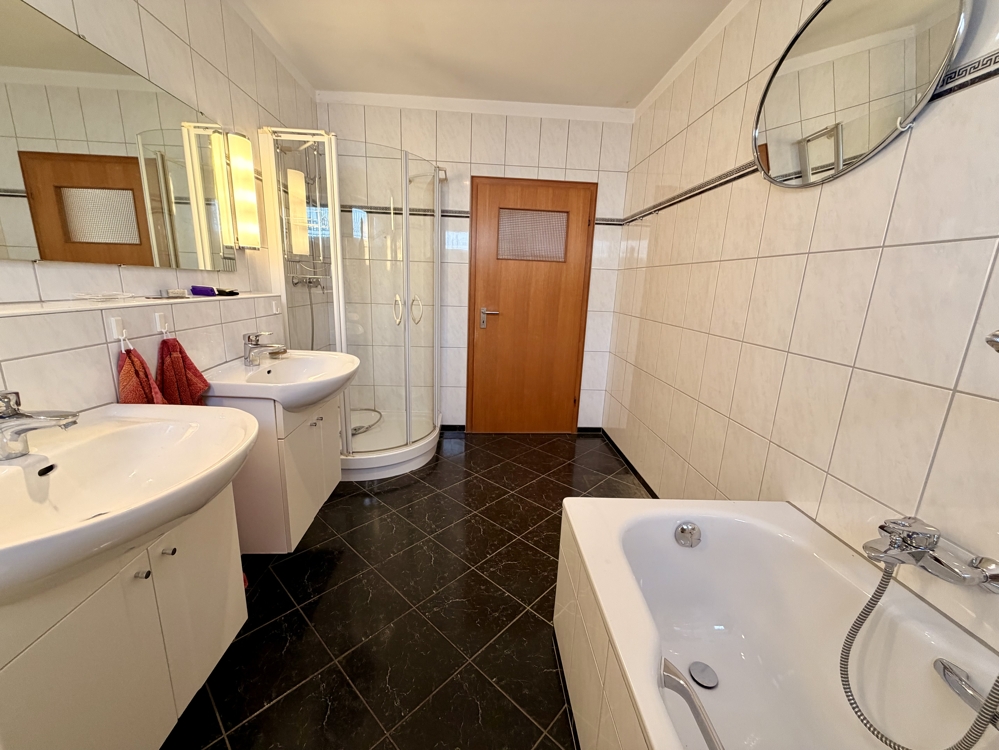 Eine Lage die man selten findet! Direkt angrenzend an weitläufige Wiesen, Koppeln und Felder, befindet sich dieses freistehende Einfamilienhaus in Ratingen Breitscheid. Die Immobilie bietet den neuen Eigentümern auf insgesamt 185 m² Wohnfläche ausreichend Platz, um das eigene und individuelle Lebenskonzept Gestalt annehmen zu lassen. Neben einem Tageslichtbad mit Dusche und Badewanne, dem Gäste-WC und 2 möglichen Schlaf- bzw. Arbeitszimmern, ist vor allem der Wohn-und Essbereich (ca. 40 m²) dieser Immobilie definitiv das Highlight! Die direkt angrenzende Küche kann ohne großen baulichen Aufwand, zum Wohnbereich hin geöffnet werden und würde den Raum um weitere ca. 10 m² vergrößern. Große Fensterfronten im Wohn- und Essbereich bieten einen direkten Blick auf die Terrasse und den Garten, welcher dann in den oben beschriebenen Fernblick übergeht. Ein riesiger und pflegeleicht gestalteter Garten bietet den neuen Eigentümern ebenfalls vielseitige Gestaltungsmöglichkeiten. Ein eigener Pool im Garten in Südausrichtung? Das wäre hier sofort denkbar. Das Obergeschoss der Immobilie hält ein zweites Bad mit Dusche bereit und wird von insgesamt 4 Schlaf- oder Arbeitszimmern abgerundet. Zudem erreichen Sie von hier aus auch die Nutzfläche im Dachgeschoss. Die Immobilie ist komplett unterkellert und bietet auch hier wahnsinnig viel Fläche, welche sich vielseitig nutzen lässt. Auch hier finden Sie ein weiteres Gäste-WC. Eine direkt am Haus angrenzende Garage ist ebenfalls vorhanden. Diese bietet praktischerweise auch ein zusätzliches Rücktor zum Garten. Nutzen Sie diese seltene Gelegenheit, welche naturnahes Wohnen und eine gute Verkehrsanbindung kombiniert!