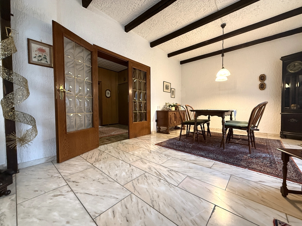 Diese gepflegte Erdgeschosswohnung befindet sich in sehr ruhiger und guter Wohnlage in der Vogelsangstraße in Gelsenkirchen-Horst. Das Wohnumfeld ist überwiegend von Eigentümern geprägt und liegt in einer verkehrsberuhigten 30er-Zone. Beim Betreten der Wohnung gelangen Sie in eine großzügige Diele mit schöner Stuckdecke. Von hier aus erreichen Sie ein Gäste-WC mit Fenster. Das Schlafzimmer liegt ruhig zum Innenhof bzw. Gartenbereich. Hier bietet Ihnen ein sehr großer Einbauschrank mit Schiebetüren viel Stauraum; ein zusätzlicher Spiegelschrank kann auf Wunsch verbleiben. Das Badezimmer verfügt über Fenster und Badewanne. Ein Highlight der Wohnung ist das äußerst großzügige Wohnzimmer mit viel Tageslicht durch große Fensterflächen. Holzbalkendecke und Marmorboden sorgen für ein gemütliches Wohnambiente. Über das Esszimmer, das als Durchgangszimmer dient, erreichen Sie die Küche. Von hier besteht direkter Zugang zur Terrasse und zum Gartenanteil. Zur Wohnung gehören ein eigener Kellerraum sowie eine Garage mit elektrischem Sektionaltor und Fernbedienung. Die Garage bietet Platz für einen PKW sowie z. B. E-Bikes. Die Wohnung ist mit Rollläden ausgestattet. Die vorhandenen braunen Einbauten können nach individuellem Geschmack gestrichen oder getönt werden. Die Wohnung wird funktionstüchtig übergeben. Diese Wohnung ist ideal für alle, die Wert auf großzügiges Wohnen, stilvolle Ausstattung und den Komfort eines ruhigen 3-Parteien-Hauses genießen möchten. Wir freuen uns auf Ihre Anfrage!