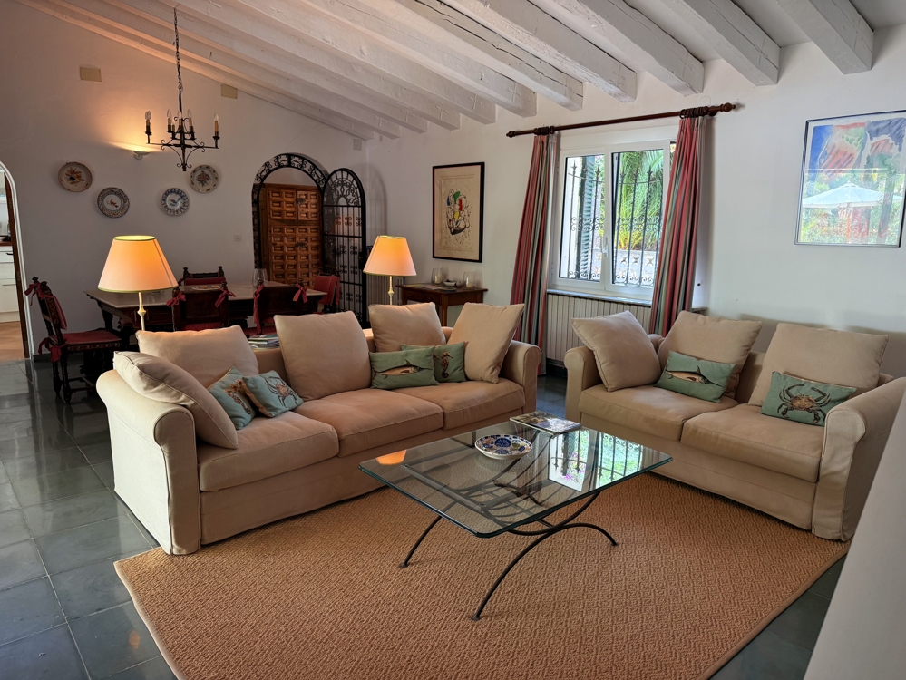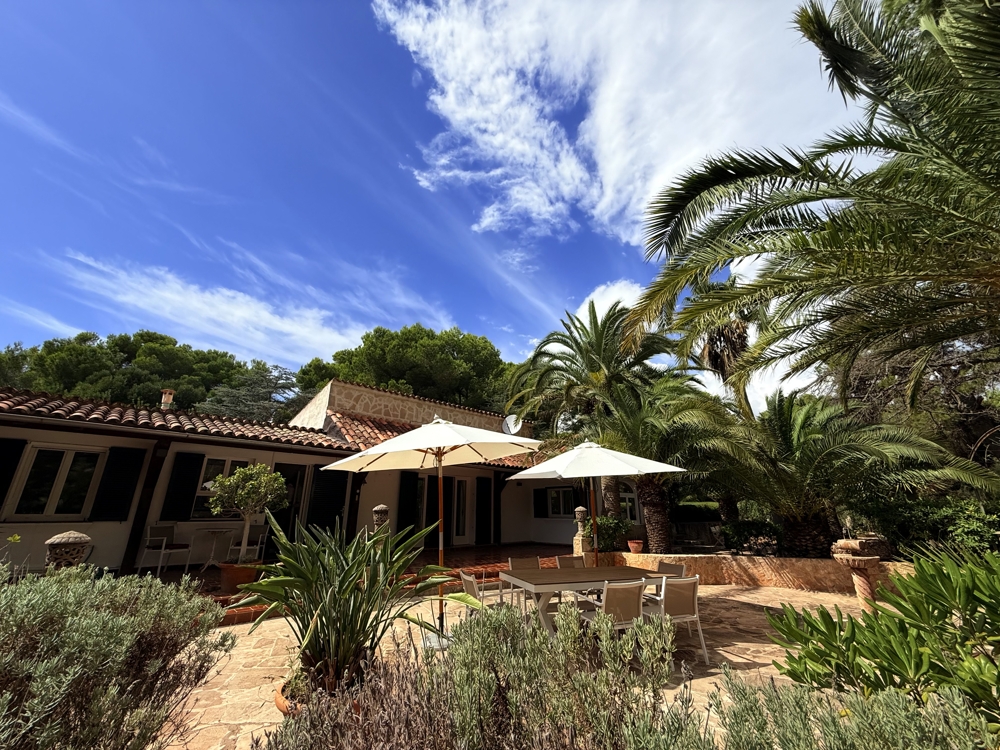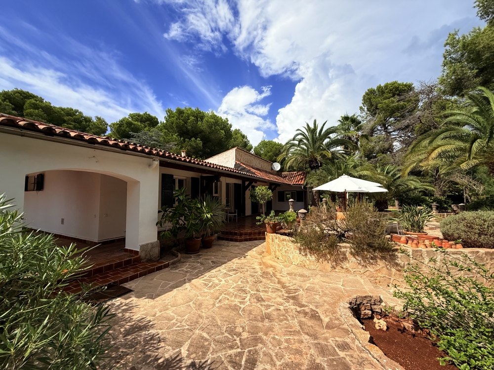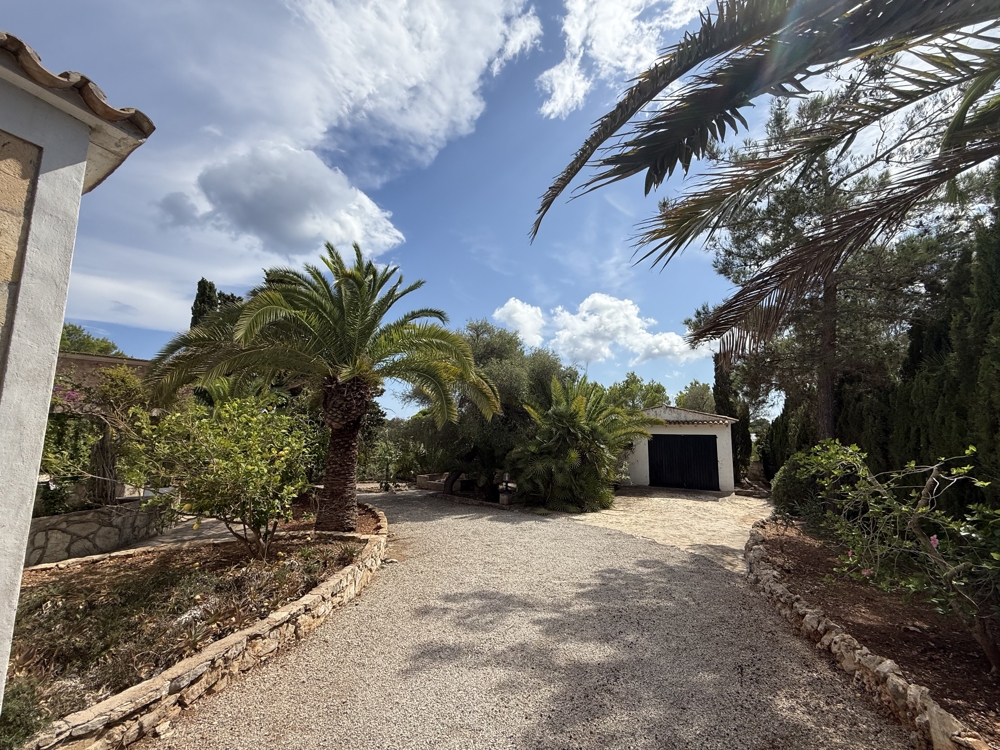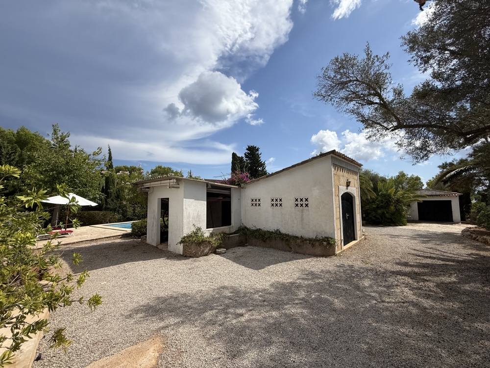 Dieses charmante mallorquinische Haus vereint mediterranen Charakter mit idyllischer Ruhe und viel Raum zur Entfaltung. Auf einem großzügigen Grundstück von ca. 3.220 m², umgeben von altem Baumbestand und majestätischen Palmen, öffnet sich eine private Oase mit romantisch angelegtem Garten, verschlungenen Wegen und zahlreichen Sitzplätzen. Die Villa bietet ca. 230 m² Wohnfläche auf aktuell rund ca. 303 m² bebauter Fläche – mit der Option, diese zu erweitern. Traditionelle Elemente verleihen dem Haus seinen unverwechselbaren Charme, während die Haustechnik fast vollständig erneuert wurde. Im August 2023 wurde zudem der Pool komplett modernisiert und fügt sich perfekt in den traumhaften Außenbereich ein. Das Raumangebot umfasst drei Schlafzimmer und drei Bäder. Jedes Schlafzimmer ist mit einem Klimagerät ausgestattet, das sowohl kühlen als auch heizen kann. Ein separater Gästetrakt mit eigenem Bad und direktem Zugang bietet Privatsphäre für Besucher. Zusätzlich besteht die Möglichkeit, ein eigenes Gästeappartment auszubauen und so die Wohnfläche flexibel zu erweitern. In einem Nebengelass des Hauptgebäudes befinden sich ein weiteres Bad, ein Waschraum sowie ein Werkzeugraum. Eine Garage rundet das Angebot ab. Nur etwa 300 Meter trennen das Anwesen vom nächsten Strand – ein kurzer Spaziergang führt direkt ans Meer. Damit verbindet die Finca mediterrane Lebensqualität, naturnahe Ruhe und unmittelbare Strandnähe auf einzigartige Weise.