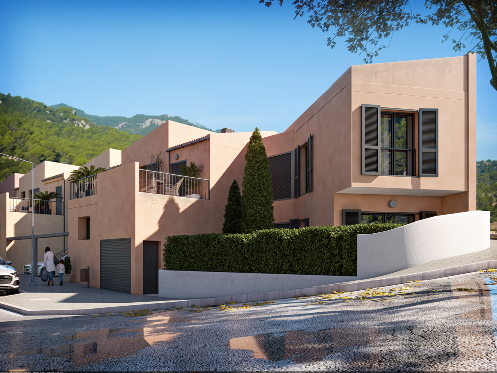 Dieses einzigartige Neubau-Projekt, bestehend aus 13 Reihenvillen, verkörpert die authentische Architektur mallorquinischer Dorfhäuser und verspricht ein anspruchsvolles Wohnkonzept in idyllischer Umgebung. Die sorgfältig gestalteten Villen sind harmonisch in die malerische Umgebung eingebettet und bieten eine perfekte Mischung aus Tradition und Moderne. Die 13 Einheiten erstrecken sich von ca. 142m² bis ca. 166m² Wohnfläche über zwei Etagen und präsentieren sich mit großzügigen drei Schlafzimmern, zwei Bädern und einem Gästebad. Der offene Wohn-/Essbereich erstreckt sich bis zur Terrasse und schafft einen einladenden Raum für entspannte Stunden. Die Verwendung von großformatigen Porzellanfliesen in allen Wohnräumen verleiht den Immobilien einen Hauch von Traditionellem und Modernität. Die offen gestalteten Küchen sind mit hochwertigen Elektrogeräten ausgestattet und werden voll möbliert übergeben. Alle Häuser verfügen über einen eigenen Garten, sowie eine nach Südwesten ausgerichtete Terrasse mit atemberaubenden Ausblicken. Der Zugang zum liebevoll gestalteten Gemeinschaftsbereich mit Pool verspricht erfrischende Momente der Entspannung. Jede Immobilie verfügt über einen eigenen Parkplatz mit direktem Zugang, um den Komfort der Bewohner zu maximieren. Erleben Sie ein einzigartiges Zuhause inmitten der Schönheit und Gelassenheit Mallorcas. Falls wir ihr Interesse geweckt haben, stehen wir Ihnen gerne als Ansprechpartner zur Verfügung.