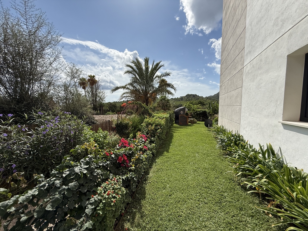 Diese Erdgeschosswohnung in Font de Sa Cala verbindet modernes Design mit viel Freiraum im Grünen. Sie befindet sich in einer im Jahr 2023 fertiggestellten Wohnanlage mit 42 Parteien. Die Wohnung hat eine bebaute Fläche von ca. 117 m² mit einer ca. 20 m² Terrasse und einem ca. 211 m² privater Garten. Der Grundriss umfasst drei Schlafzimmer, zwei geschmackvoll ausgestattete Bäder mit bodengleichen Duschen und Fußbodenheizung, sowie einen offenen Wohn- und Essbereich mit integrierter Küche. Ein Highlight ist der seitlich verlaufende Garten, der Privatsphäre und vielfältige Nutzungsmöglichkeiten bietet – ideal zur Erholung. Ergänzt wird dieser Bereich durch eine ca. 20 m² große Terrasse mit Blick ins Grüne, die zusätzlichen Raum zum Entspannen bietet. Zu den weiteren Besonderheiten der Wohnung zählt eine moderne Entkalkungs- und Osmoseanlage für beste Trinkwasserqualität. Zusätlich steht Ihnen ein Außenstellplatz sowie ein Tiefgaragenplatz mit Abstellraum zur Verfügung. Darüber hinaus können die Bewohner den gepflegten ca.25m langen Gemeinschaftspool der Anlage nutzen. Dank ihrer Kombination aus hochwertiger Ausstattung, durchdachtem Grundriss und großzügigen Außenflächen eignet sich diese Immobilie perfekt für alle, die Komfort und Naturverbundenheit verbinden möchten. Ein Großteil der Möbel kann übernommen werden.