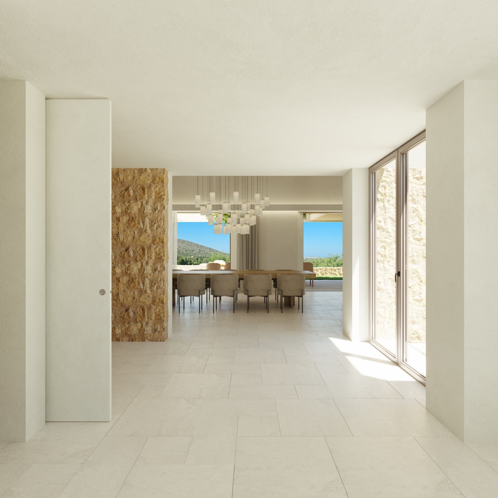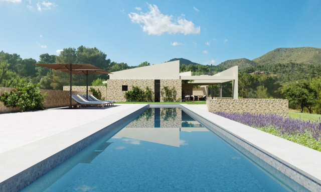 In den sanften Hügeln rund um Son Macià, im begehrten Südosten Mallorcas, befindet sich dieses außergewöhnliche Baugrundstück mit einer Fläche von rund 26.400 m². Die erhöhte Lage bietet einen atemberaubenden Blick bis zum Meer und schafft den perfekten Rahmen für den Bau eines exklusiven Rückzugsortes. Mit nur drei diskreten Nachbaranwesen und gesichertem Zufahrtsweg genießen Sie hier maximale Privatsphäre inmitten einer intakten Naturkulisse. Eine rechtskräftige Baugenehmigung erlaubt den sofortigen Baubeginn eines modernen Einfamilienhauses mit einer Gebäudefläche von ca. 442 m². Geplant sind ein lichtdurchfluteter Wohn- und Essbereich mit Kamin, eine großzügige Küche mit angeschlossenem Patio sowie ein Master-Schlafzimmer mit einem eigenem Bad mit exklusivem Komfort. Zusätzlich steht Ihnen ein Gäste-WC sowie ein separater Gästebereich mit drei weiteren Schlafzimmern zur Verfügung. Ein besonderes Highlight stellt die weitläufige Dachterrasse dar: Hier erwartet Sie eine Outdoor-Küche sowie Lounge-Bereiche mit spektakulärem Rundumblick. Die verschiedenen Terrassen, Sitzgelegenheiten und ein großzügiger, beheizbarer Pool sorgen für höchsten Freizeitwert und mediterrane Lebensqualität. Ein Stromanschluss kann realisiert werden; die Energieversorgung soll primär über die geplante Photovoltaikanlage erfolgen. Wasser kann über einen zu bohrenden Brunnen gewonnen werden. Gerne stehen wir Ihnen für weitere Fragen als Ansprechparnter zur Verfügung.