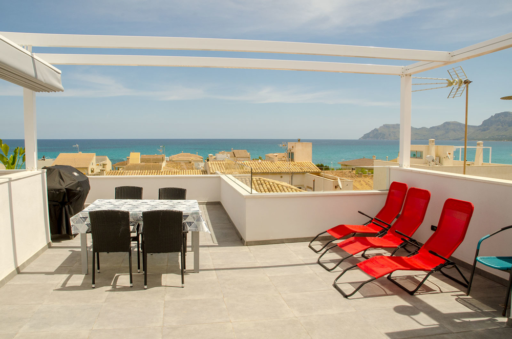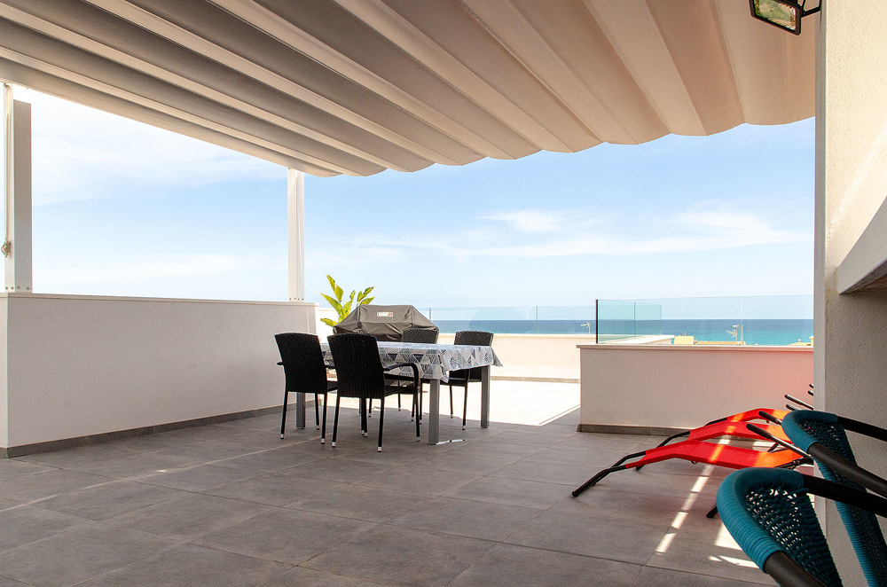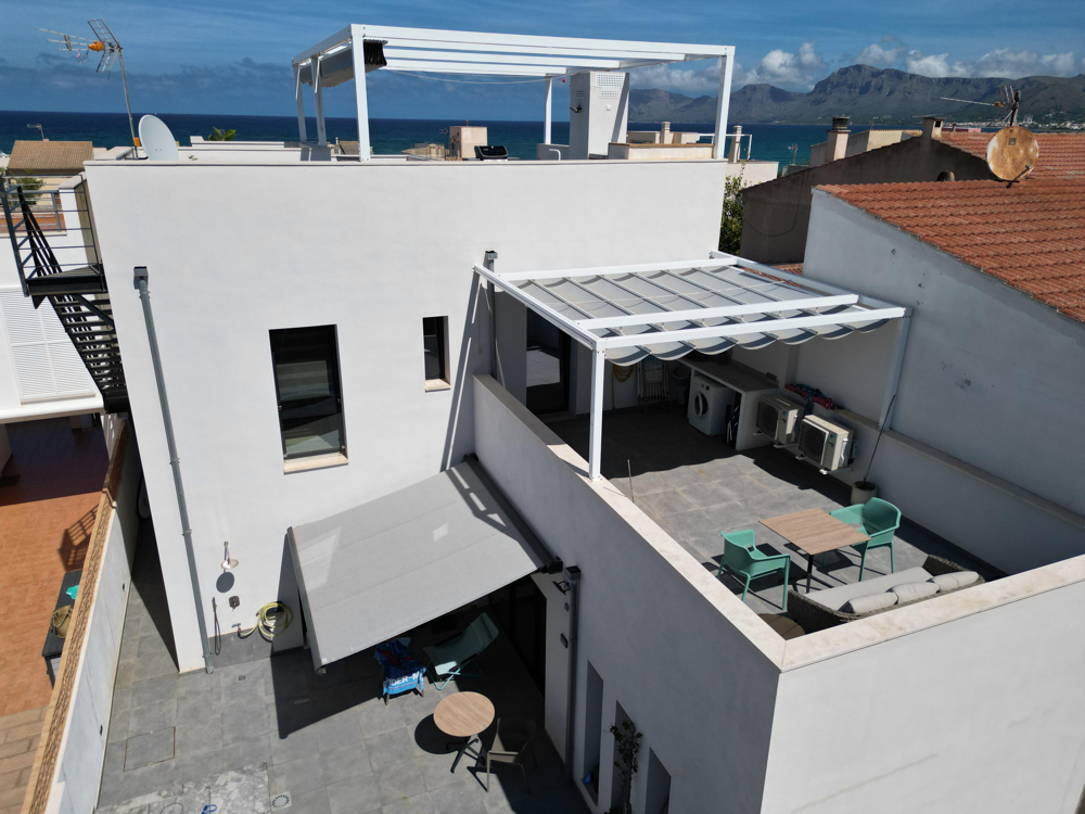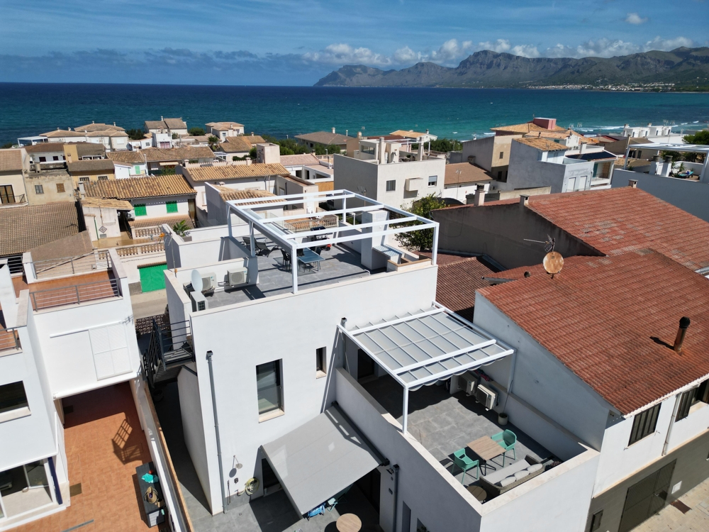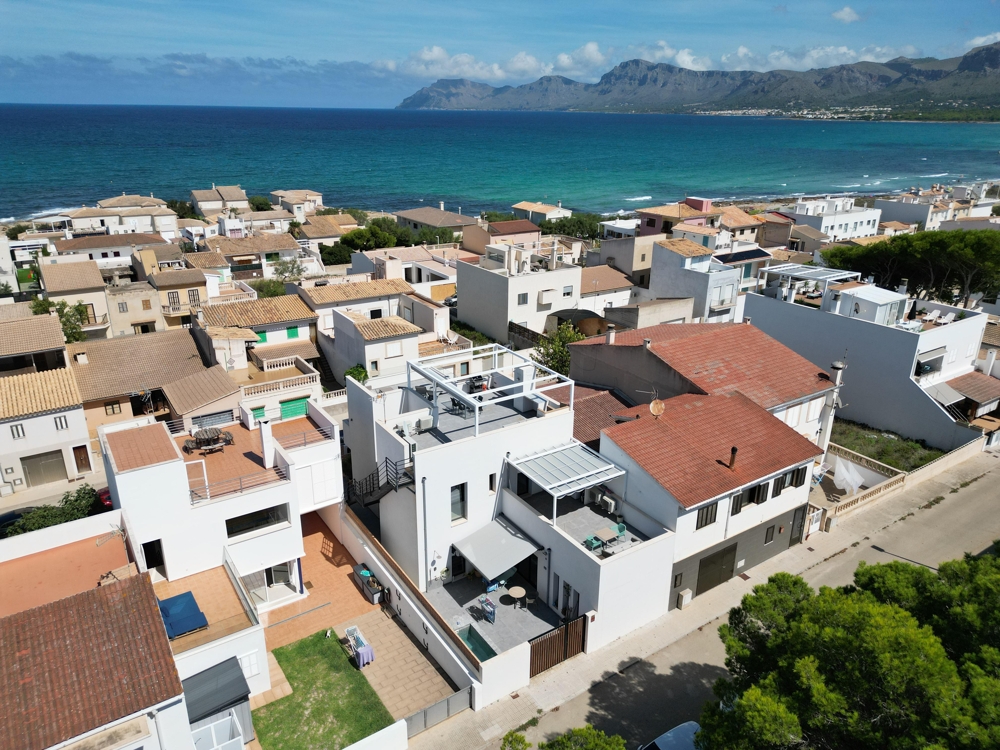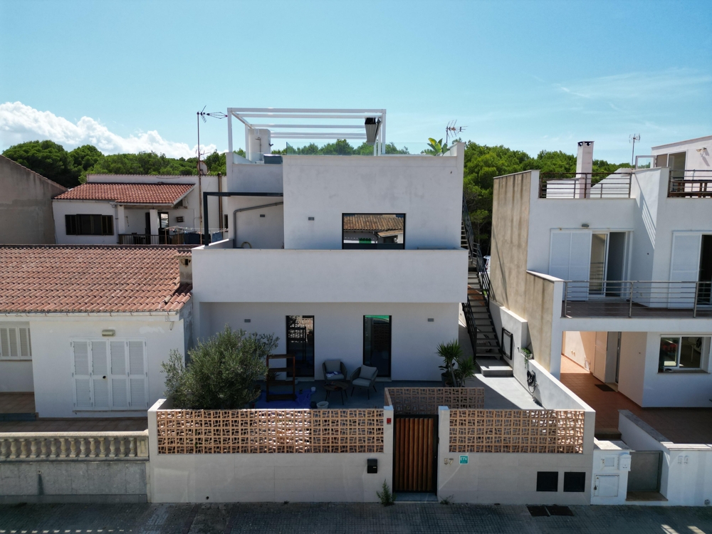 In Son Serra de Marina erwartet Sie ein modernes Haus mit zwei Wohneinheiten, das sich durch seine puristische Architektur auszeichnet. Dies zweigeschossige Zweifamilienwohnhaus bietet nicht nur ein beeindruckendes Design, sondern auch eine Lizenz für Ferienvermietung, einen erfrischenden Pool und einen atemberaubenden Meerblick. Von hier aus können Sie bequem die nur wenige Meter entfernten Strände von Son Serra de Marina erreichen oder einen Spaziergang zum Café El Sol unternehmen. Das zweistöckige Haus besteht aus zwei separaten Wohneinheiten und einer großzügigen Dachterrasse mit einer Außenküche, die Ihnen einen traumhaften Blick auf das Meer bietet. Die untere Wohnung, die barrierefrei gebaut ist, bietet großzügige ca. 115 m² Wohnfläche und verfügt über einen eigenen Stellplatz für einen PKW sowie einen kleinen, erfrischenden Pool. Die obere Wohnung erstreckt sich über ca. 75 m² und verfügt über eine ebenso geräumige Dachterrasse von ca. 75 m², von der aus Sie einen malerischen Blick auf das Meer genießen können. Das Haus verfügt über eine Lizenz für Ferienvermietung für bis zu sechs Personen, was angesichts der Beliebtheit des Ortes und seiner Nähe zum Strand ein äußerst lukratives Geschäftsmodell darstellt. Beide Etagen sind mit Klimaanlagen ausgestattet, die sowohl kühlen als auch heizen können, und es besteht die Möglichkeit, eine Solaranlage zu installieren. Dieses Haus bietet somit nicht nur modernen Komfort, sondern auch eine nachhaltige Energieoption. Wenn Sie nach einem schönen und ruhigen Ort direkt am Meer suchen, dann heißen wir Sie herzlich in Son Serra de Marina willkommen und stehen Ihnen kompetent auf Ihrem Weg zur Verwirklichung Ihrer Wunschimmobilie zur Seite.