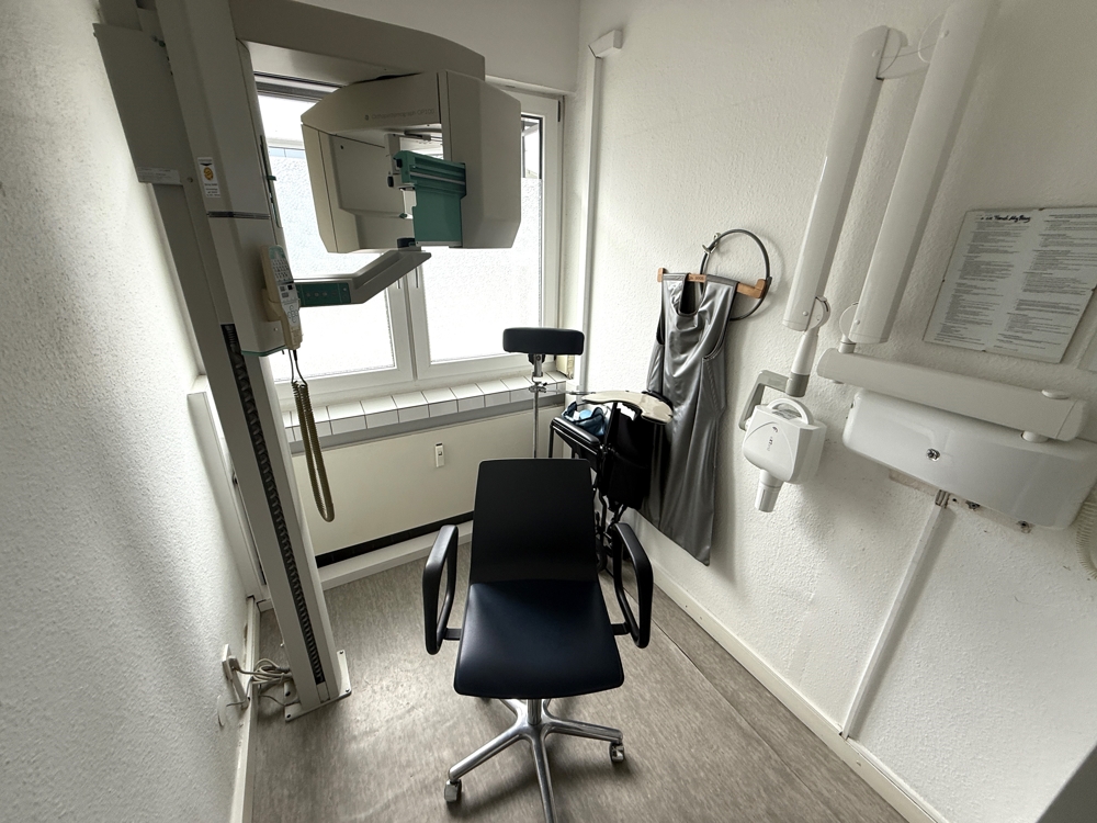 Zum 01.09.2026 wird in der Innenstadt von Gladbeck eine großzügige Praxisfläche frei. Sie befindet sich im zweiten Obergeschoss der Volksbank-Filiale und bietet damit eine repräsentative Adresse in einem modernen Geschäftshaus mit sehr guter Erreichbarkeit. Die derzeit als Zahnarztpraxis genutzten Räume verfügen über drei Behandlungszimmer, einen Röntgenraum, einen Personalraum sowie ein Wartezimmer und eine WC-Anlage. Durch die funktionale und praxisgerechte Aufteilung eignen sich die Flächen sowohl für die weitere Nutzung als Zahnarztpraxis als auch für andere medizinische Fachrichtungen oder gesundheitsnahe Dienstleistungen. Die zentrale Innenstadtlage sorgt für eine hohe Sichtbarkeit, eine gute Anbindung an den öffentlichen Nahverkehr und kurze Wege zu Parkmöglichkeiten. Damit bietet die Praxisfläche ideale Voraussetzungen für einen erfolgreichen Praxisbetrieb in einem attraktiven Umfeld. Die ersichtliche Empfangstheke ebenso wie der deckenhohe Aktenschrank im Eingangsbereich können vom Vormieter übernommen werden. Nutzen Sie diese einmalige Chance und vereinbaren Sie noch heute einen Besichtigungstermin!