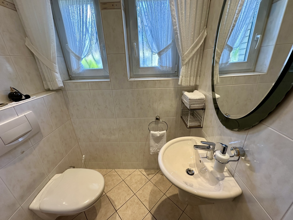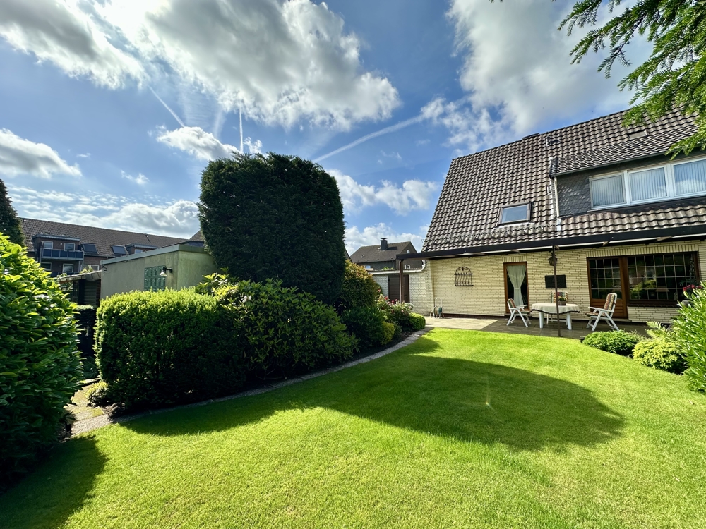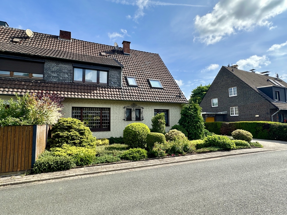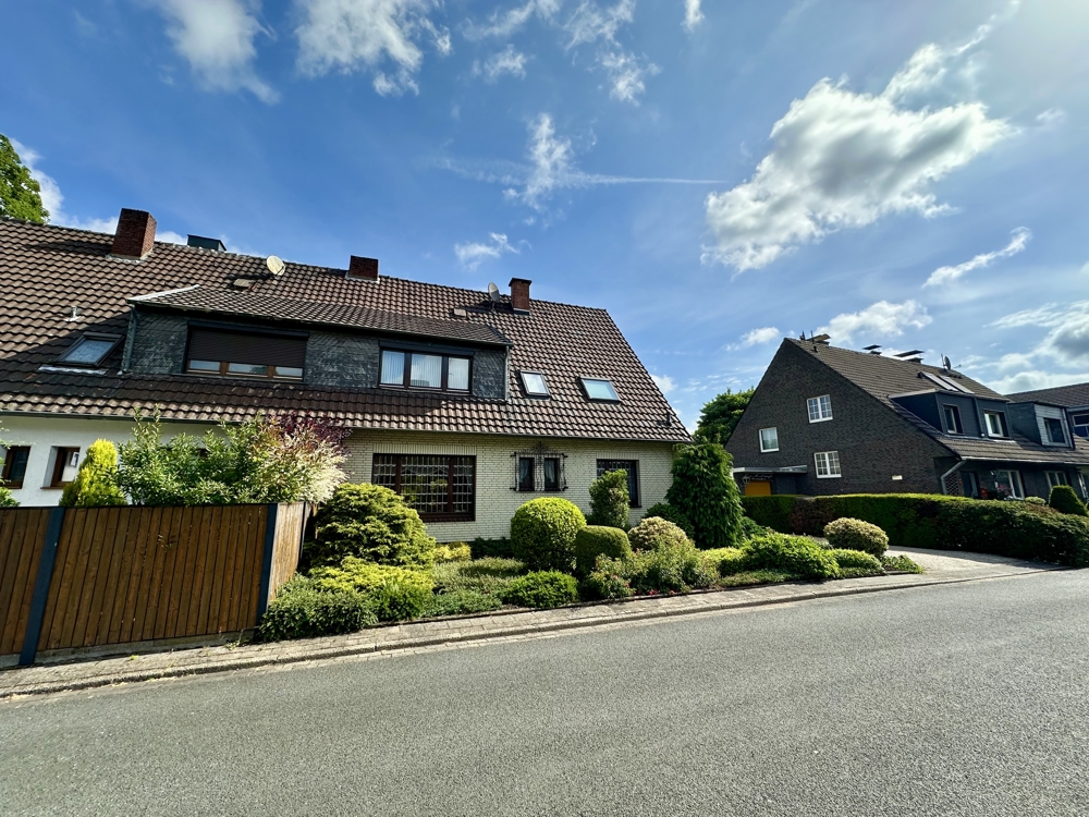 In ruhiger Sackgassenlage befindet sich diese Doppelhaushälfte in Duisburg- Rheinhausen. Das ursprünglich als Zweifamilienhaus konzipierte Objekt wurde seit Anbeginn als Einfamilienhaus genutzt. Durch die geräumige Diele im EG erreichen Sie einerseits den separaten Essbereich als auch die Küche. Zudem finden Sie auf dieser Ebene einen Garderobenbereich, ein Gäste-WC und den großen Wohnbereich mit Kamin, der durch einen Durchbruch fast 37 m² Wohnfläche hat. Über das EG erreichen Sie zudem auch den pflegeleicht gestalteten Garten mit überdachtem Terrassenbereich. Das Gäste-WC kann auf dieser Ebene auf Wunsch auch wieder mit dem jetzigen Garderobenbereich zusammengelegt und in das ehemalige Vollbadezimmer zurück gewandelt werden. Über das Treppenhaus gelangen Sie in das 1. OG der Immobilie. Hier finden Sie zwei kleinere Zimmer, welche sich ideal als Arbeits- oder Kinderzimmer nutzen lassen. Eines der beiden Räume hat zudem Zugang zu einer kleinen Nutzfläche im Dachgeschoss. Die beiden großen Räume wurden durch einen Durchbruch verbunden und bilden nun ein großen Ankleidebereich mit Schlafzimmer. Das ursprüngliche Hauptbad wurde in ein WC umgewandelt. Natürlich besteht auch hier die Möglichkeit und der Platz, auf dieser Ebene wieder ein vollständiges Bad zu schaffen. Dies haben wir in den beigefügten Animationen für Sie in 2 Varianten als Beispiel visualisiert. Ersatzweise haben die Eigentümer eine riesige und ebenerdige Dusche im Kellerbereich des Hauses geschaffen. Eine Doppelgarage mit integriertem Abstellraum und 2 Stellplätzen davor ist ebenfalls vorhanden und rundet dieses Angebot ab!