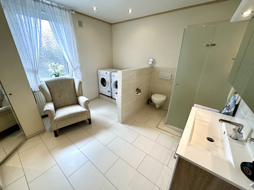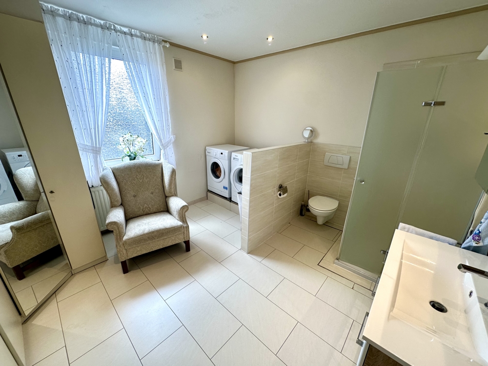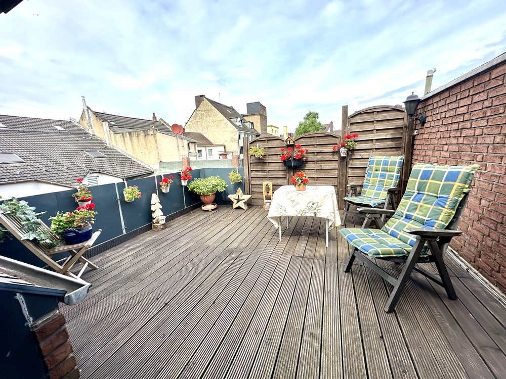 Zentral gelegen befindet sich dieses Zweifamilienhaus aus dem Ursprungsjahr 1928 in Duisburg Alt-Hamborn und wurde von den bisherigen Eigentümer bereits seit 1999 in nahezu allen Punkten saniert und modernisiert. Das Erdgeschoss der Immobilie beherbergt eine ca. 71 m² große vermietete Zweiraumwohnung. Die freiwerdende Eigentümerwohnung bietet ca. 133 m² Wohnfläche und erstreckt sich über das 1. OG und das Dachgeschoss der Immobilie. In der ersten Ebene finden Sie neben der Diele und dem Gäste-WC, einen riesigen Wohn- und Essbereich mit offenem Kamin, welcher durch verschiedene Durchbrüche ein tolles Raumgefühl bietet. Alternativ kann hier durch wenig baulichen Aufwand auch ein weiteres Schlafzimmer wieder abgeteilt werden. Direkt angrenzend befindet sich die Küche, welche auch Zugang zum Balkon bietet. Die hier vorhandene moderne Einbauküche ist im Kaufpreis inbegriffen. Im Dachgeschoss der Immobilie befindet sich das Elternschlafzimmer und das modern gestaltete Hauptbad mit bodentiefer Dusche, welches zeitgleich Platz für die Waschmaschine und den Trockner bietet und mit einem großen Einbauschrank versehen ist. Ergänzt wird dies durch ein großes Arbeitszimmer, von welchem aus Sie einerseits die ca. 23 m² große Dachterrasse erreichen und zeitgleich Zugang zum Spitzboden haben. Dieser hält ebenfalls ca. 25 m² zusätzliche Nutzfläche für die neuen Eigentümer bereit. Die Eigentümerwohnung wird in Kürze freigezogen und kann von den neuen Eigentümern somit nach Kauf umgehend bezogen werden. Das Haus ist zudem komplett unterkellert, verfügt über ein Carport und einen weiteren Stellplatz davor. Im April 2023 wurde das Haus zudem mit einer PV-Anlage und einer Wallbox ausgestattet.