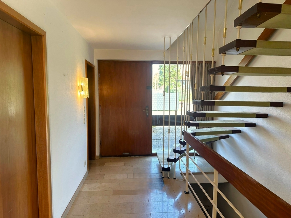 Dieses freistehende Einfamilienhaus befindet sich in absoluter Top-Lage von Herten-Westerholt, unweit des Golfplatzes, auf einem ca. 1.100 m² großen Grundstück. Mit insgesamt 4 Zimmern und ca. 133 m² Wohnfläche bietet es ein ideales Zuhause für Familien oder Paare mit Anspruch an Ruhe, Platz und Privatsphäre. Die klassische Raumaufteilung, der weitläufige Garten sowie die integrierte Garage erhöhen den Wohnkomfort zusätzlich. Im Erdgeschoss erwartet Sie eine separate Küche mit eigenem Raumcharakter, ein Gäste-WC, eine Garderobe sowie ein großzügiges Ess- und Wohnzimmer, das durch eine große Fensterfront besonders lichtdurchflutet ist. Von hier aus besteht ein direkter Zugang zur Terrasse, die nahtlos in den Garten übergeht und den Wohnraum ins Freie erweitert. Das Obergeschoss verfügt über drei komfortabel geschnittene Schlafzimmer, sowie ein Badezimmer mit Dusche und Badewanne. An eines der Schlafzimmer grenzt eine kleine Küchenzeile sowie ein separates, kleines WC mit Waschbecken an. Zusätzlich steht ein Balkon mit Blick in den Garten zur Verfügung, der von allen Räumen aus zugänglich ist und einen schönen Ausblick ins Grüne bietet. Das Gebäude ist teilunterkellert und bietet damit zusätzliche Nutz- und Abstellfläche. Der Garten stellt ein besonderes Highlight dar: Neben der Terrasse bietet er eine große, gepflegte Grünfläche und ist nahezu vollständig von Bäumen, Büschen und Tannen eingefasst, wodurch ein hohes Maß an Privatsphäre und ein naturnahes Wohngefühl entsteht. Die Immobilie befindet sich in einem dem Alter entsprechenden sanierungsbedürftigen Zustand. Durch Undichtigkeiten am Balkon liegen Feuchtigkeitsschäden im Geräteraum und an einem Fenster im Wohnzimmer vor. Der Fokus dieser Immobilie liegt auf der hervorragenden Lage und dem großzügigen Grundstück, sowie der Nähe zum Wasserschloss Westerholt und dem angrenzenden Golfplatz.. Nutzen Sie Ihre Chance und vereinbaren Sie einen Besichtigungstermin!
