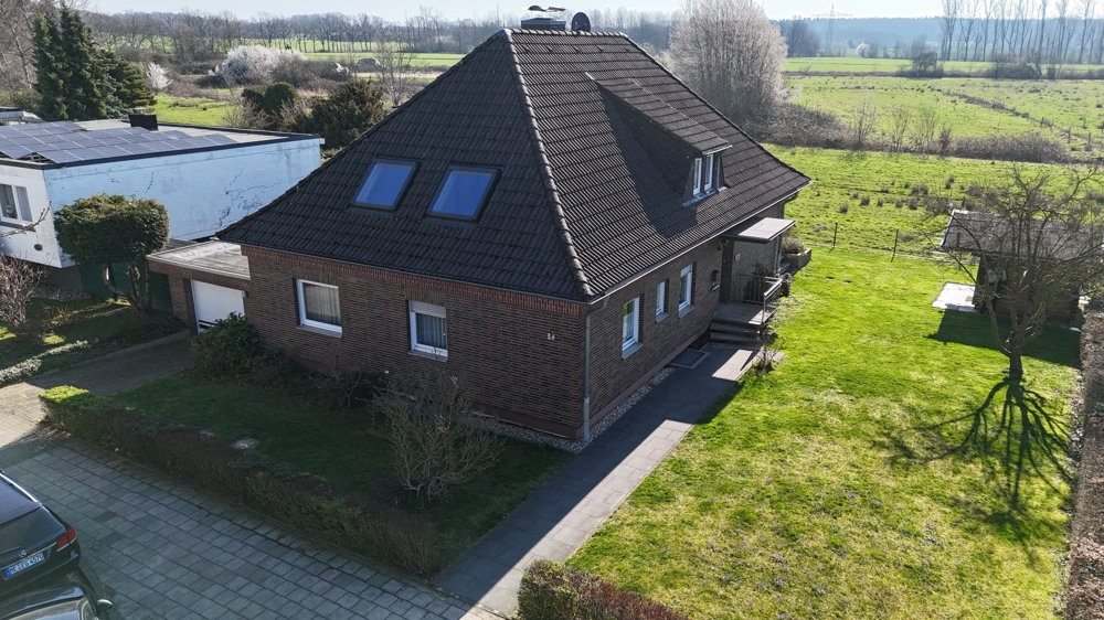Eine Lage die man selten findet! Direkt angrenzend an weitläufige Wiesen, Koppeln und Felder, befindet sich dieses freistehende Einfamilienhaus in Ratingen Breitscheid. Die Immobilie bietet den neuen Eigentümern auf insgesamt 185 m² Wohnfläche ausreichend Platz, um das eigene und individuelle Lebenskonzept Gestalt annehmen zu lassen. Neben einem Tageslichtbad mit Dusche und Badewanne, dem Gäste-WC und 2 möglichen Schlaf- bzw. Arbeitszimmern, ist vor allem der Wohn-und Essbereich (ca. 40 m²) dieser Immobilie definitiv das Highlight! Die direkt angrenzende Küche kann ohne großen baulichen Aufwand, zum Wohnbereich hin geöffnet werden und würde den Raum um weitere ca. 10 m² vergrößern. Große Fensterfronten im Wohn- und Essbereich bieten einen direkten Blick auf die Terrasse und den Garten, welcher dann in den oben beschriebenen Fernblick übergeht. Ein riesiger und pflegeleicht gestalteter Garten bietet den neuen Eigentümern ebenfalls vielseitige Gestaltungsmöglichkeiten. Ein eigener Pool im Garten in Südausrichtung? Das wäre hier sofort denkbar. Das Obergeschoss der Immobilie hält ein zweites Bad mit Dusche bereit und wird von insgesamt 4 Schlaf- oder Arbeitszimmern abgerundet. Zudem erreichen Sie von hier aus auch die Nutzfläche im Dachgeschoss. Die Immobilie ist komplett unterkellert und bietet auch hier wahnsinnig viel Fläche, welche sich vielseitig nutzen lässt. Auch hier finden Sie ein weiteres Gäste-WC. Eine direkt am Haus angrenzende Garage ist ebenfalls vorhanden. Diese bietet praktischerweise auch ein zusätzliches Rücktor zum Garten. Nutzen Sie diese seltene Gelegenheit, welche naturnahes Wohnen und eine gute Verkehrsanbindung kombiniert!