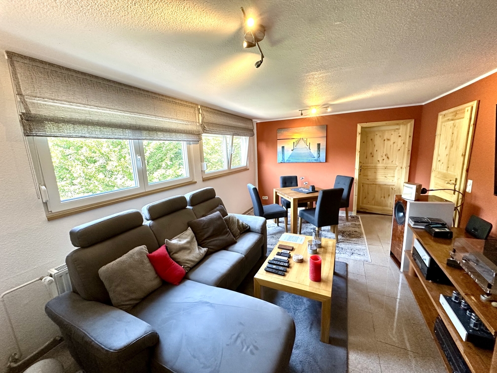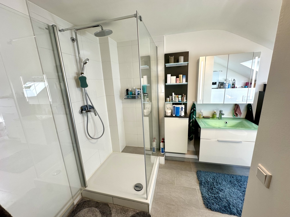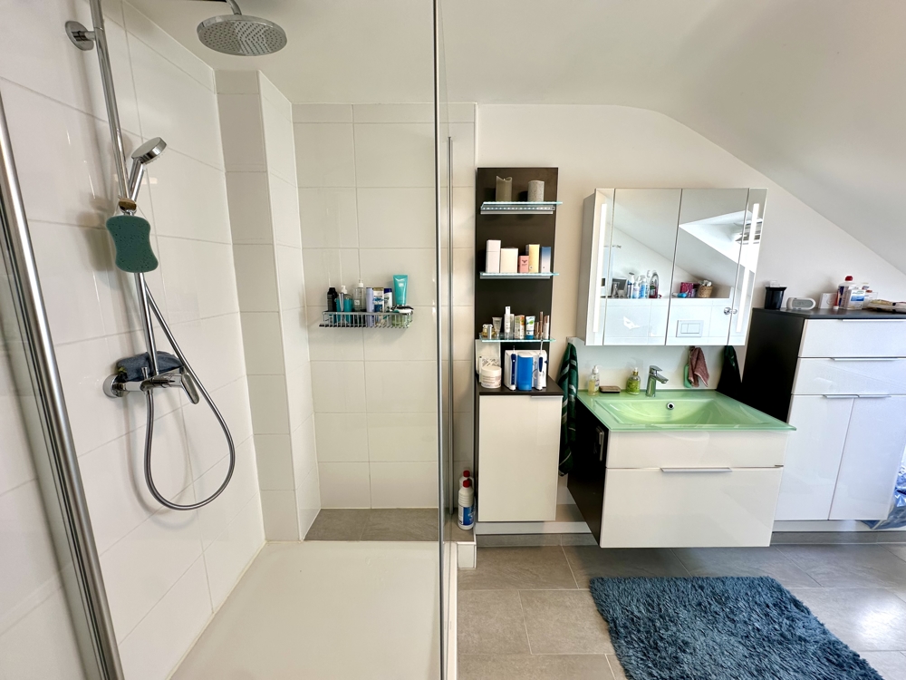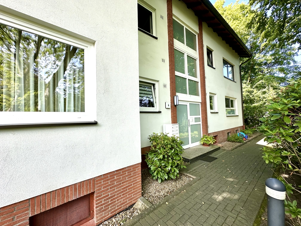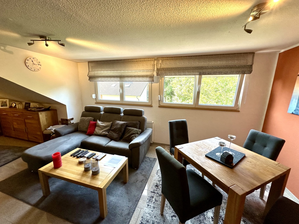 In ruhiger und dennoch zentraler Lage von Ratingen-Hösel, befindet sich diese modernisierte Eigentumswohnung im Dachgeschoss eine gepflegten Mehrfamilienhauses. Neben der Diele und dem geräumigen und modern gestalteten Gäste-WC, verfügt die Wohnung über eine großzügigen Küchenbereich. Die hier vorhandene Einbauküche ist im Preis inbegriffen. Direkt angrenzend finden Sie den großen Wohn-und Essbereich. Highlight hier ist zweifelsohne der eigene Kaminofen, der gemütliche Stunden im Winter garantiert. Von hier aus erreichen Sie linkerhand das Arbeits- bzw. Kinderzimmer der Wohnung. Hier bestünde grundsätzlich auch die Möglichkeit, nachträglich einen Balkon anzubauen. Eine erste Voranfrage hierzu ist positiv ausgefallen. Auf der anderen Seite des Wohnbereiches, gelangen Sie dann in das Schlafzimmer mit integrierten kleinem Ankleidebereich. Von hier aus erreichen Sie zudem auch, das ebenfalls modern gestaltete Hauptbad der Wohnung. Dieses bietet Ihnen eine große bodentiefe Dusche, ein Bidet und verfügt natürlich, wie das Gäste-WC auch, über ein großes Fenster. Ein eigener Kellerraum, ein Waschküchenbereich und eine gemeinschaftlich nutzbare Terrasse im Außenbereich gehören genauso zur Wohnung, wie ein eigener Außenstellplatz direkt am Haus.